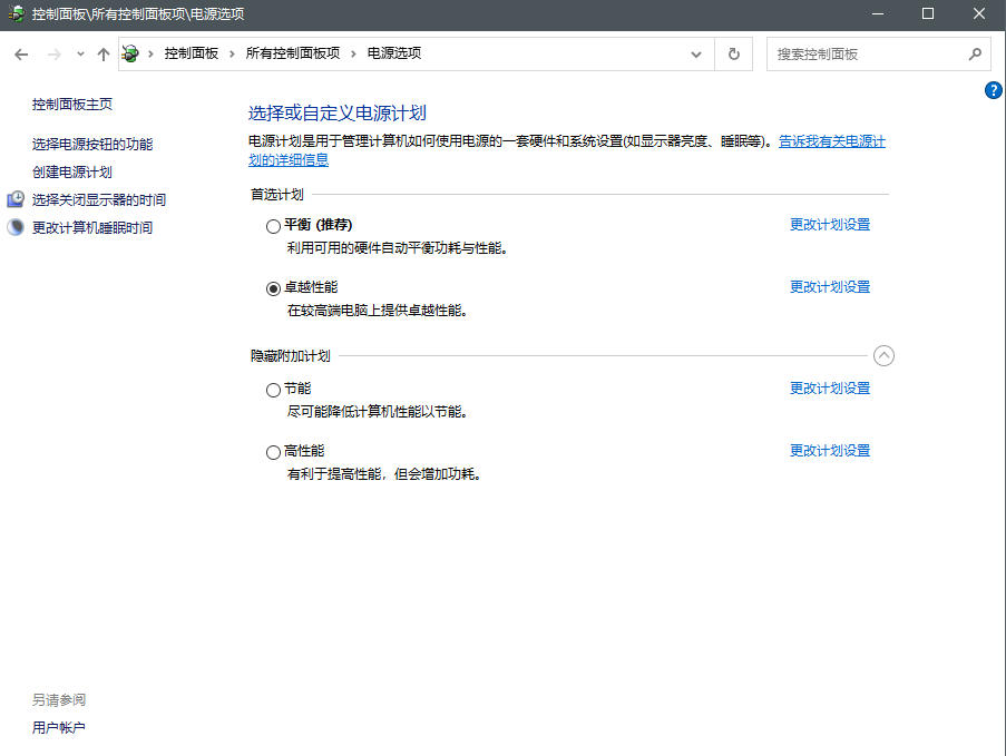 电源选项新增卓越性能